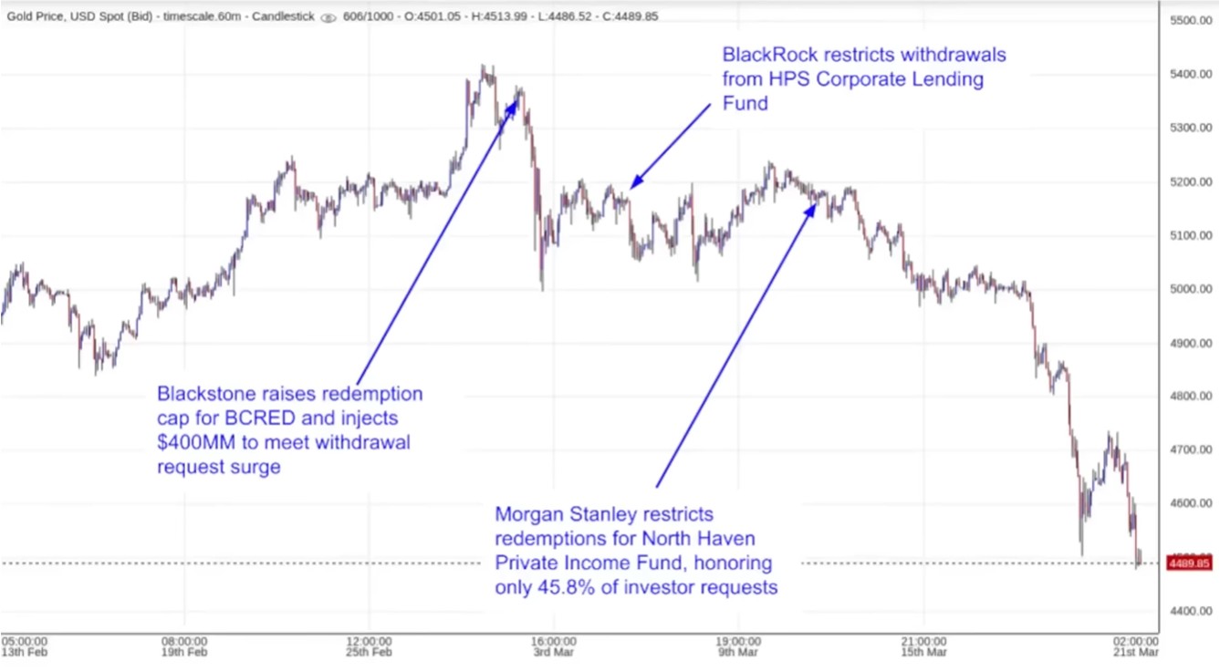 Zbudowano ogromne spekulacyjne zadłużenie, a jego uczestnicy potrzebują jednej rzeczy, która jest prawnie wymagana do rozliczania długów — dolara amerykańskiego. Dzisiaj opowiem o rynku prywatnego kredytu wartym 3,5 biliona dolarów i o tym, jak pułapka płynności zmusza uczestników korzystających z dźwigni do sprzedaży złota. To dokładnie to samo, co wydarzyło się w 2008 roku.