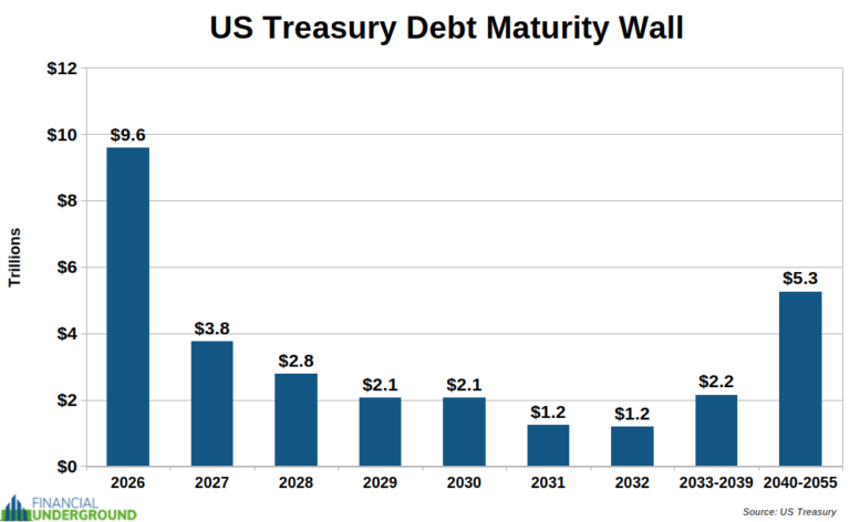 Warto zauważyć, że około 6,6 biliona z 9,6 biliona dolarów zapadających w tym roku (czyli około 69%) to krótkoterminowe bony skarbowe. To typowe w kryzysie zadłużeniowym. Gdy popyt na długoterminowe obligacje słabnie, inwestorzy przenoszą się do krótkoterminowych instrumentów, takich jak bony skarbowe, zamiast 10-letnich obligacji i 30-letnich papierów.