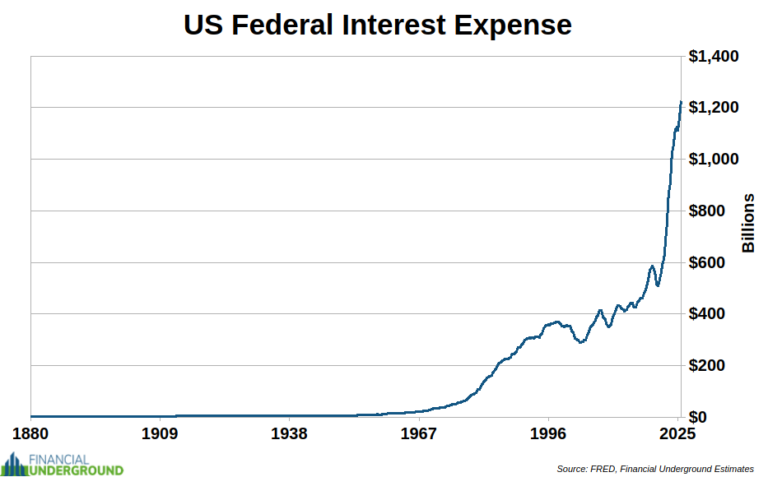 Rosnące koszty odsetek zagrażają wypłacalności rządu USA i zmuszają Rezerwę Federalną do obniżania stóp procentowych, skupowania obligacji skarbowych i stosowania innych narzędzi luzowania monetarnego w celu kontroli kosztów zadłużenia. Na rynku obligacji, gdy popyt spada, rosną stopy procentowe, aby przyciągnąć kupujących.
