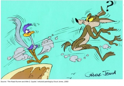 Kiedy "Wiluś E. Kojot" (Wile E. Coyote) jest pewny siebie, może chodzić w chmurach. Jego pewność siebie znika, gdy nagle dostrzega rzeczywistość. Recesje zawsze zaskakują konwencjonalnych ekonomistów, ponieważ załamanie zaufania wywołuje nagły wzrost bezrobocia i niewypłacalności oraz gwałtowny spadek kredytów i wydatków.